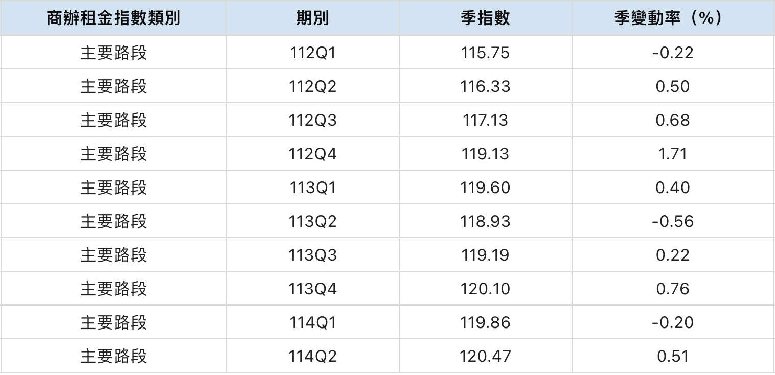 臺北市商辦租金指數。