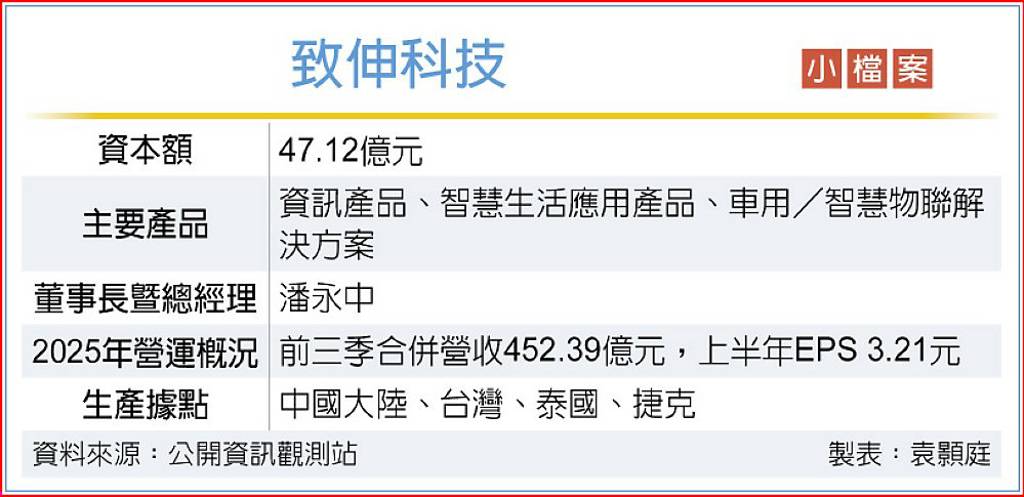 此外,致伸去年成功打進通路品牌,全線打入他們的電腦周邊產品供應鏈,包括滑鼠、鍵盤、甚至耳機都開始出貨,明年更逐步放量,因此電腦周邊產品業績有合理的成長。